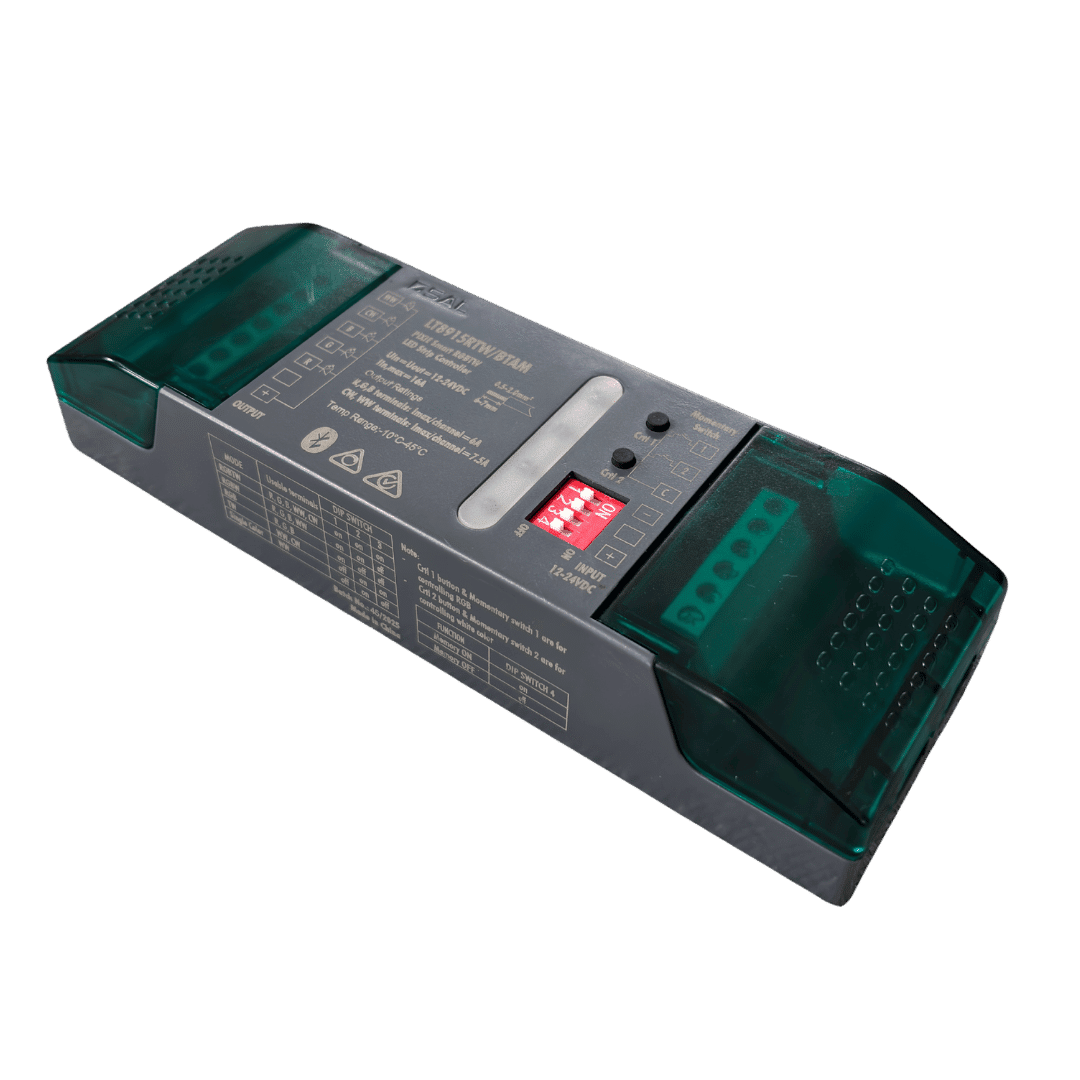 The PIXIE LT8915RTW-BTAM Universal LED Strip Controller is a dedicated Gen3 LED strip dimmer for all types of 12v & 24v Constant Voltage LED strip from most vendors in most variants including single colour, RGB, RGBW, TW/CCT (tunable white/HCL)